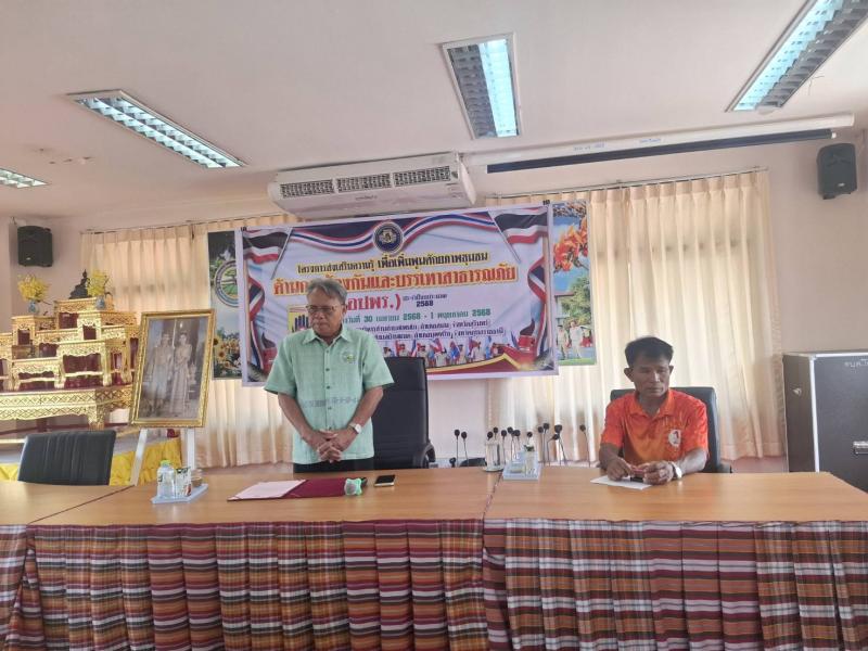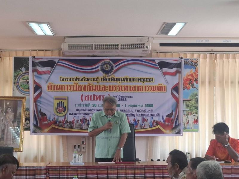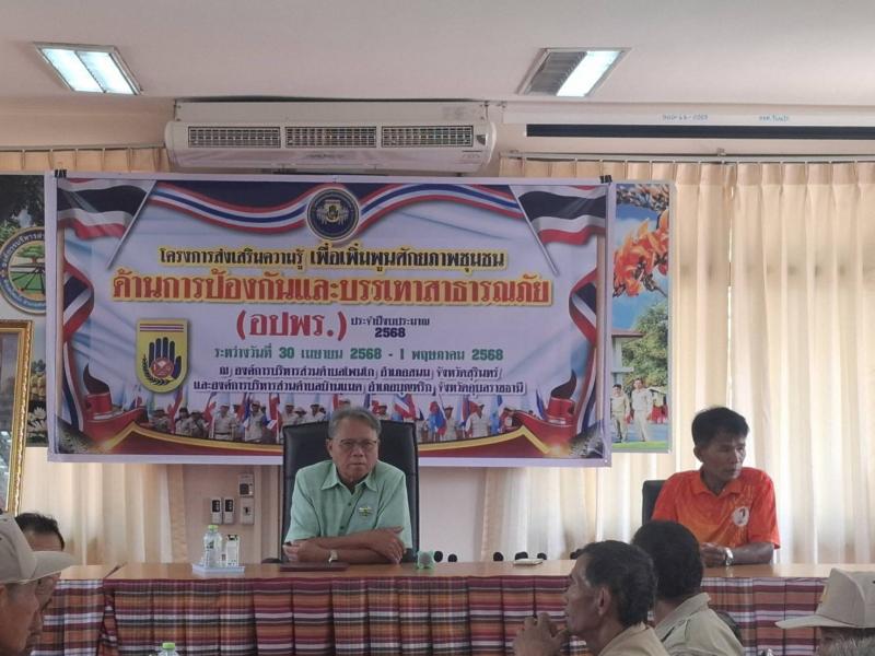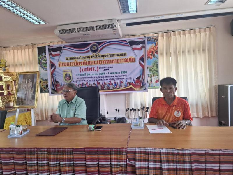 วันที่ 30 เมษายน - 1 พฤษภาคม 2568 โครงการส่งเสริมความรู้เพื่อเพิ่มพูนศักยภาพชุมชนด้านการป้องกันและบรรเทาสาธารณภัย (อปพร.) ประจำปีงบประมาณ พ.ศ. 2568เพื่อพัฒนาความรู้ความสามารถให้กับประชาชน และสมาชิกอาสาสมัครป้องกันภัยฝ่ายพลเรือน (อปพร)ได้รู้เท่าทันต่อการเปลี่ยนแปลงที่เกิดขึ้นสามารถร่วมกันป้องกันและบรรเทาสาธารณภัยที่อาจเกิดขึ้นต่อชีวิตและทรัพย์สินของประชาชนได้อย่างทันท่วงที และเกิดประสิทธิภาพตามวัตถุประสงค์ที่ได้กำหนดไว้ (ภาพกิจกรรมชุดที่ 1)