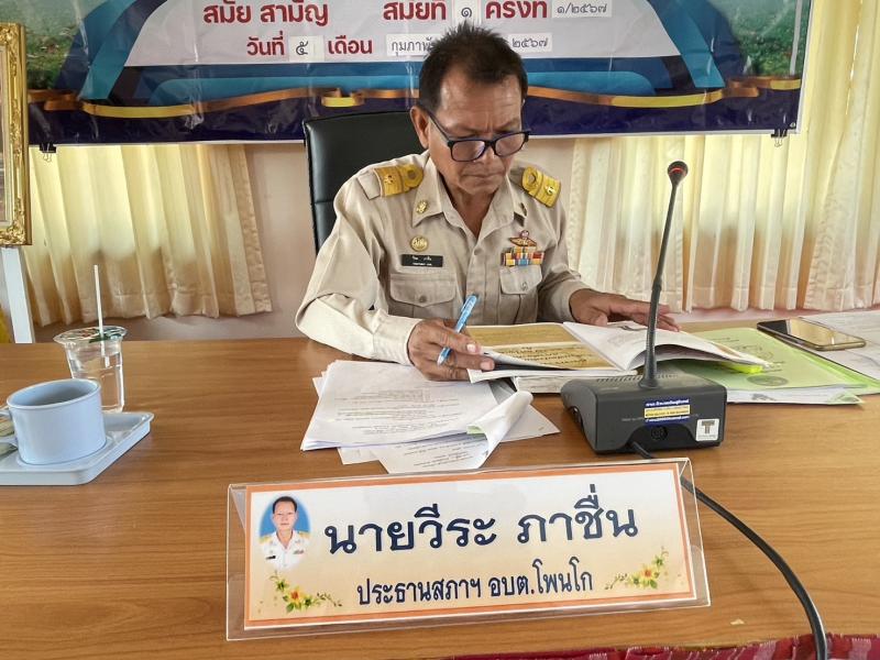วัน จันทร์ ที่ 5 เดือน กุุมภาพันธ์ พ.ศ.2567 ได้มีการประชุมสภาองค์การบริหารส่วนตำบลโพนโก สมัยสามัญ สมัยที่ 1 ครั้งที่ 1/2567 โดยนายวีระ ภาชื่น ประธานสภา นายสมศักดิ์ ชนะชัย รองประธานสภา