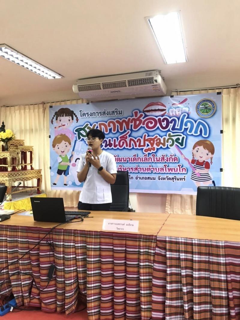 นางบุบผชาติ สุจินพรัหม รองปลัด รักษาการแทน ปลัดอบต.โพนโก เป็นประธานกล่าวเปิดงาน โครงการส่งเสริม สุขภาพช่องปากในเด็กปฐมวัย ณ ห้องประชุมชั้น 2 อบต.โพนโก