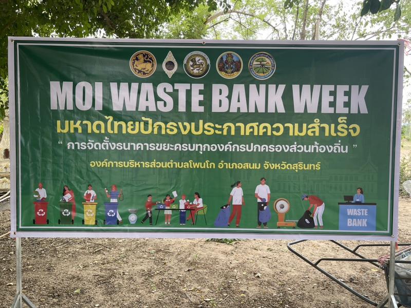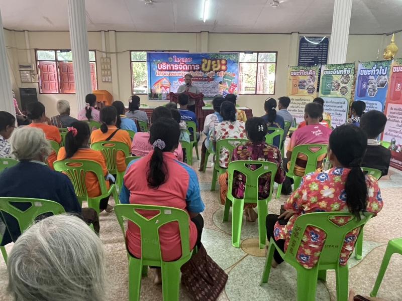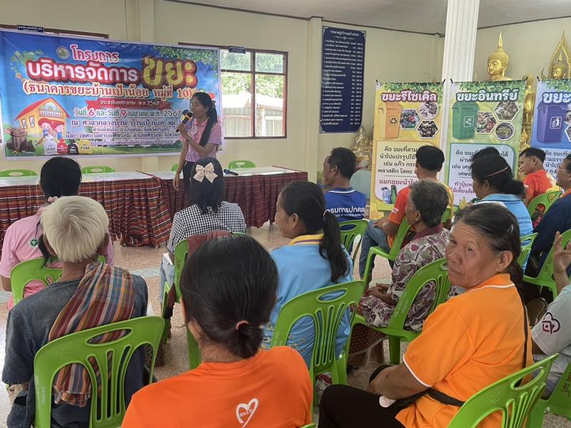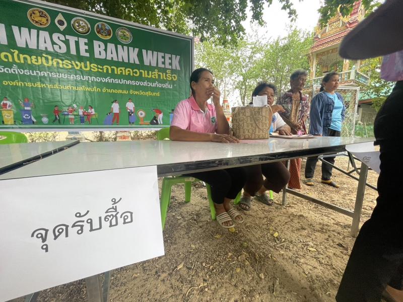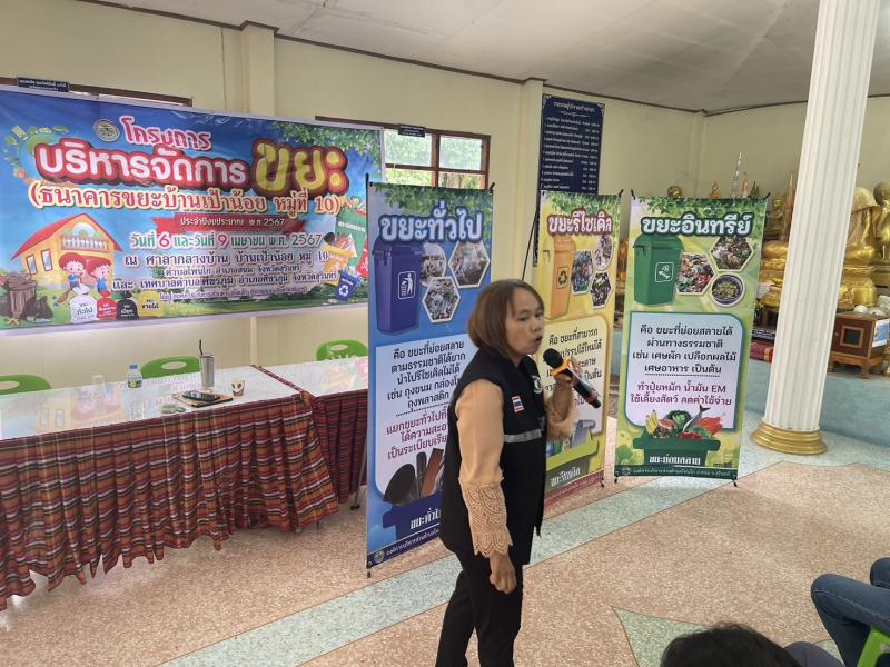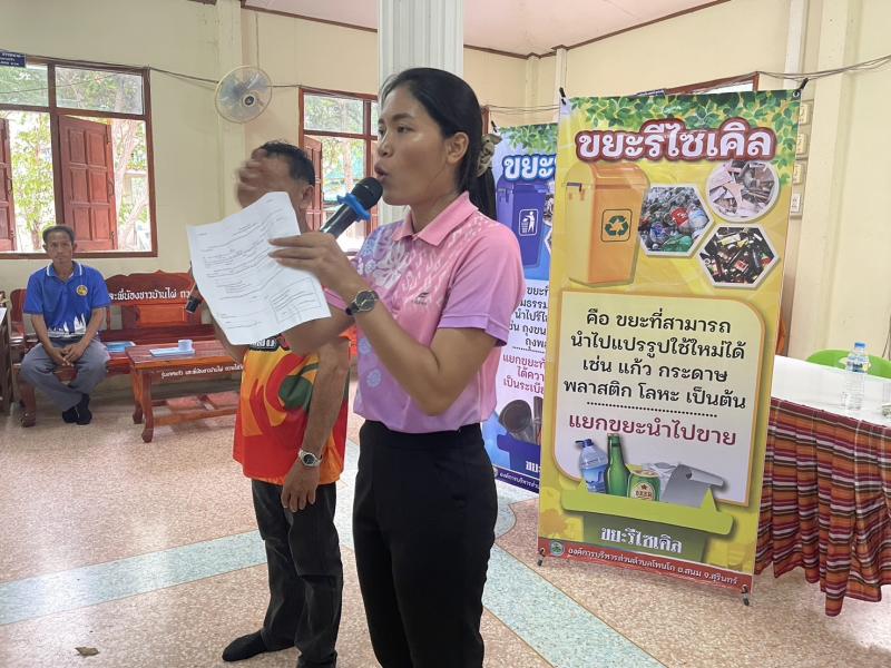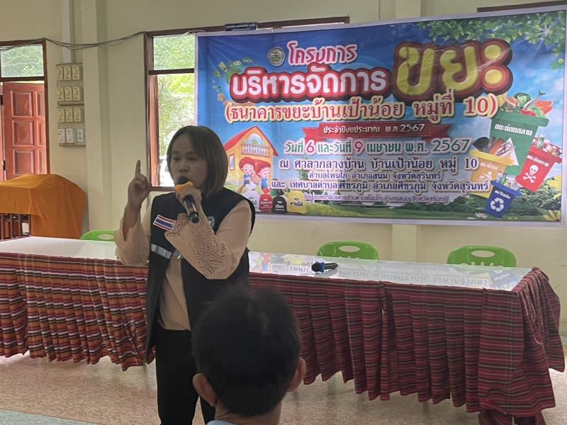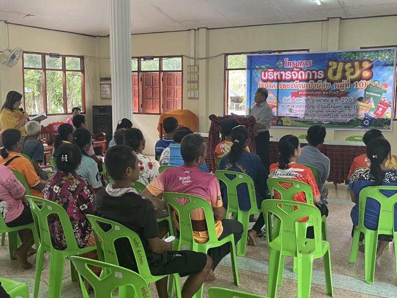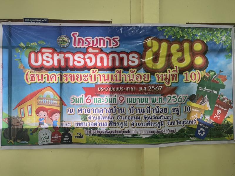 วันที่ 9 เมษายน 2567 เวลา 09.00 น. งานสาธารณสุขและสิ่งแวดล้อม สังกัด สำนักปลัด องค์การบริหารส่วนตำบลโพนโก โดยมีคณะผู้บริหาร พนักงานส่วนตำบล และคณะกรรมการธนาคารขยะบ้านเป้าน้อยหมู่ที่ 10 ตำบลโพนโก อำเภอสนม จังหวัดสุรินทร์ ดำเนินโครงการบริหารจัดการขยะ (ธนาคารขยะบ้านเป้าน้อย หมู่ที่ 10 ประจำปีงบประมาณ 2567 เพื่อขับเคลื่อนการดำเนินการธนาคารขยะ โดย รับสมัครสมาชิกธนาคารขยะชุมชนบ้านเป้าน้อย และมีผู้สมัครสมาชิก จำนวน 70 ครัวเรือน เพื่อเป็นการสนับสนุนให้ประชาชนคัดแยกขยะรีไซเคิลในครัวเรือน และสนับสนุนการนำแนวคิดระบบเศรษฐกิจหมุนเวียนมาใช้ในการจัดการสิ่งปฏิกูลและมูลฝอย ภายใต้หลัก 3Rs และรณรงค์สร้างการรับรู้ และจิตสำนึกให้ประชาชนมีส่วนร่วมในการลดปริมาณขยะมูลฝอยชุมชน ตามนโยบายของกระทรวงมหาดไทย