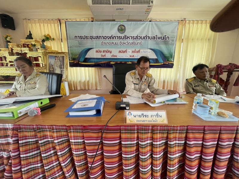 วันพฤหัสบดี ที่ 16 พฤษภาคม 2567 นายสุรินทร์ ตรองจิตต์ นายกองค์การบริหารส่วนตำบลโพนโก พร้อมด้วย คณะผู้บริหาร สมาชิกสภา และหัวหน้าส่วนราชการ ร่วมประชุมสภาสมัยวิสามัญ สมัยที่ 2/2567 โดยมี นายวีระ ภาชื่น ประธานสภาองค์การบริหารส่วนตำบลโพนโก เป็นประธานเปิดการประชุม ณ ห้องประชุมองค์การบริหารส่วนตำบลโพนโก อำเภอสนม จังหวัดสุรินทร์