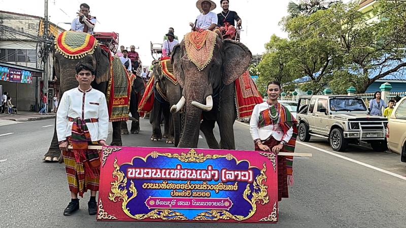 นายสุรินทร์ ตรองจิตต์ นายกองค์การบริหารส่วนตำบลโพนโก คณะผู้บริหาร นางบุบผชาติ สุจินพรัหม รองปลัดรักษาราชการแทนปลัด พนักงาน เจ้าหน้าที่และขบวนนางรำ ร่วมเดินขบวนแห่งานมหัศจรรย์งานช้างสุรินทร์อย่างสวยงาม