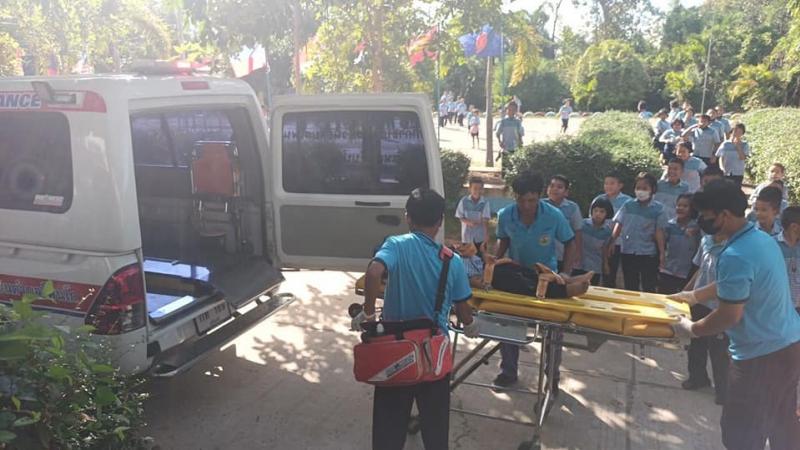 นายสุวิกร ลาล้ำ เจ้าพนักงานป้องกันและบรรเทาสาธารณภัย และเจ้าหน้ากู้ชีพ องค์การบริหารส่วนตำบลโพนโก ได้ออกพื้นที่ร่วมกิจกรรมดำเนินการชักซ้อมแผนเผชิญเหตุและการปฐมพยาบาลเบื้องต้น ณ โรงเรียนบ้านโพนโก