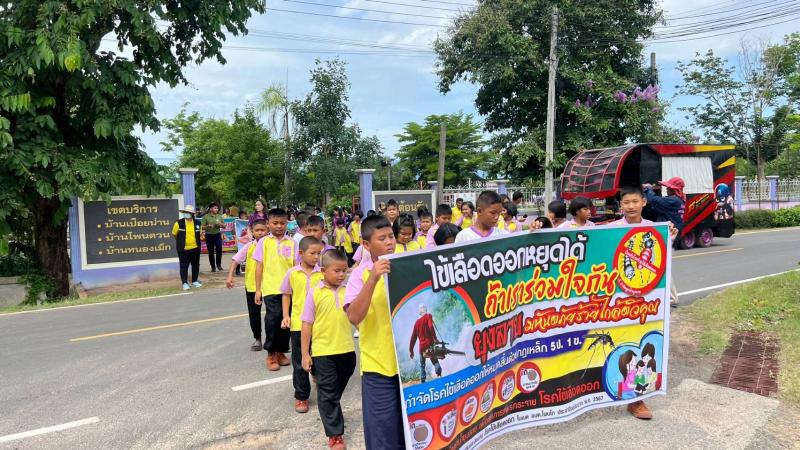 วันที่ 21 มิถุนายน 2567 งานป้องกันและบรรเทาสาธารณภัยองค์การบริหารส่วนตำบลโพนโก ร่วมกับโรงพยาบาลส่งเสริมสุขภาพบ้านโนนเปือยและโรงพยาบาลส่งเสริมสุขภาพบ้านโพนโก หัวหน้าส่วนราชการองค์การบริหารส่วนตำบลโพนโก พนักงานส่วนตำบล นักเรียน ผู้นำชุมชนและอาสาสมัครสาธารณสุขประจำหมู่บ้าน (อสม.) ออกเดินรณงค์ประชาสัมพันธ์ให้ความรู้เกี่ยวกับโรคไข้เลือดออก ณ บ้านเปือยป่าน หมู่ที่ 3 ตำบลโพนโก อำเภอสนม จังหวัดสุรินทร์ เพื่อกำจัดลูกน้ำยุงลาย สำรวจและกำจัดภาชนะที่เป็นแหล่งเพาะพันธุ์ลูกน้ำยุงลายเพื่อให้ชุมชนปลอดลูกน้ำยุงลาย ประชาชนปลอดภัยจากโรคไข้เลือดออก ในพื้นที่รับผิดชอบขององค์การบริหารส่วนตำบลโพนโก