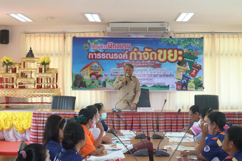 นายสุรินทร์ ตรองจิตต์ นายกองค์การบริหารส่วนตำบลโก เป็นประธานกล่าวเปิดงาน โครงการฝึกอบรมการรณรงค์กำจัดขยะ ประจำปีงบประมาณ พ.ศ. 2566 ณ ห้องประชุมชั้น 2 องค์การบริหารส่วนตำบลโพนโก