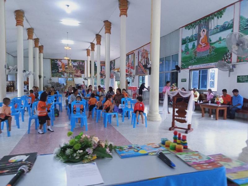 นายสงวน พิสิษฐ์รัมย์ รองนายกองค์การบริหารส่วนตำบลโพนโก เป็นประธานกล่าวเปิดงาน โครงการส่งเสริมพัฒนาการรอบด้านและการเรียนรู้ทักษะทางด้านสมอง ( EF ) ณ ศาลาการเปรียญวัดแจ้งบ้านหนองบัวแดง