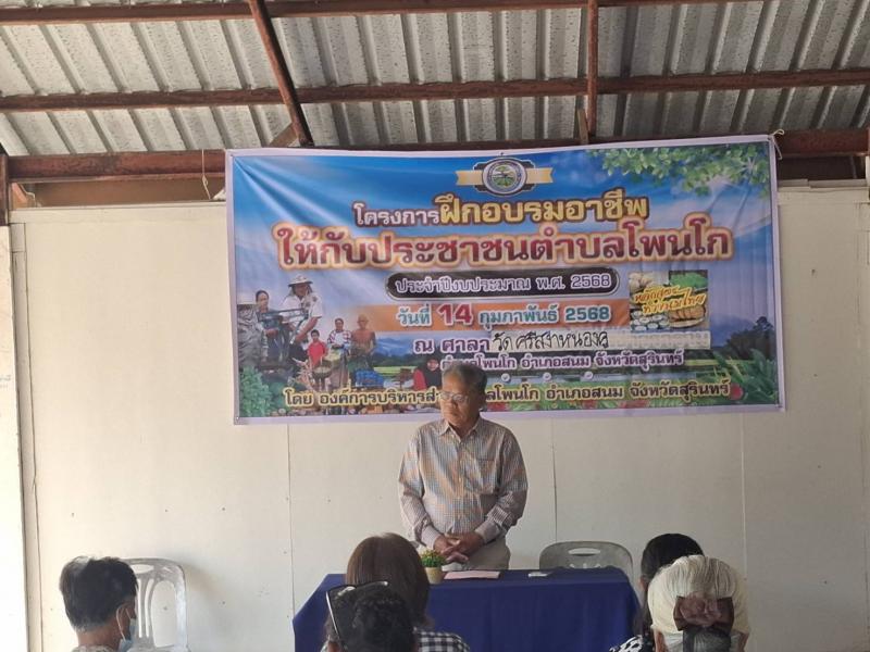 วันที่ 14 กุมภาพันธ์ 2568 นายสุรินทร์ ตรองจิตต์ นายกองค์การบริหารส่วนตำบลโพนโก เป็นประธานเปิดโครงการอบรมอาชีพให้กับประชาชนตำบลโพนโก (หลักสูตรการทำขนมไทย) ประจำปีงบประมาณ 2568 ณ วัดศรีสง่าบ้านหนองคู อำเภอสนม จังหวัดสุรินทร์