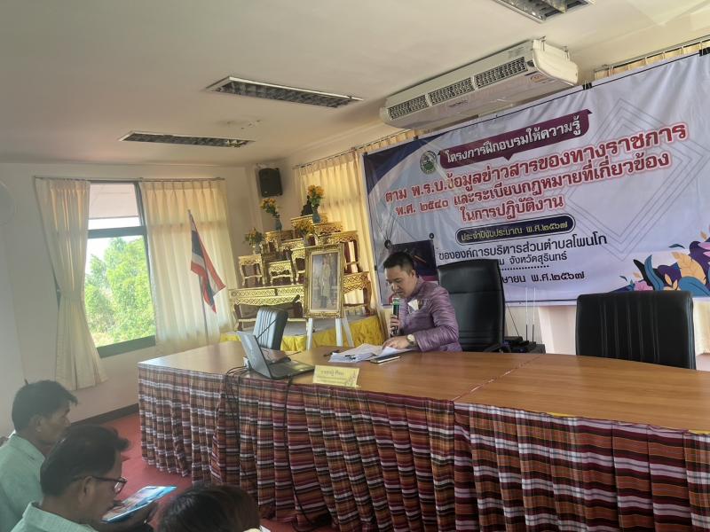 วันที่ 2 เมษายน พ.ศ. 2567 นายสุรินทร์ ตรองจิตต์ นายกองค์การบริหารส่วนตำบลโพนโก คณะผู้บริหาร เจ้าหน้าที่ และพนักงานทุกคน เข้าร่วมโครงการฝึกอบรม ให้ความรู้ตาม พ.ร.บ. ข้อมูลข่าวสารของทางราชการ พ.ศ.2540 และระเบียบกฏหมายที่เกี่ยวข้องในการปฏิบัติงาน ประจำปี 2567