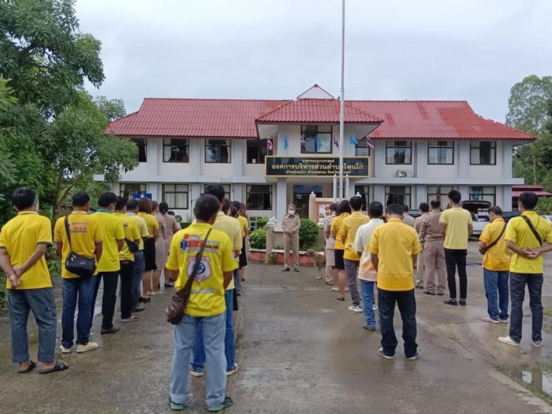 วันจันทร์ ที่ 3 เดือน ตุลาคม พ.ศ.2565 เวลา 08.30 น. นายสุรินทร์ ตรองจิตต์ นายกองค์การบริหารส่วนตำบลโพนโก คณะผู้บริหาร เจ้าหน้าที่ และพนักงาน ทำกิจกรรมเคารพธงชาติ สวดมนต์ โดยพร้อมเพรียงกัน