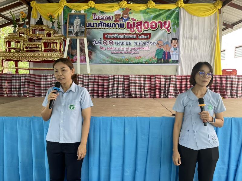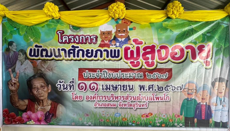 วัน พฤหัสบดี ที่ 11 เมษายน 2567 งานสวัสดิการและพัฒนาชุมชน สังกัด สำนักปลัด องค์การบริหารส่วนตำบลโพนโก ได้จัดโครงการพัฒนาศักยภาพผู้สูงอายุ ประจำปีงบ 2567 ณ องค์การบริหารส่วนตำบลโพนโก อำเภอสนม จังหวัดสุรินทร์ เพื่อเป็นการสร้างขวัญ และกำลังใจให้ผู้สูงอายุมีทัศนคติที่ดีต่อการดูแลสุขภาพให้แข็งแรงเพื่อดำรงอยู่ในสังคมอย่างมีคุณค่า ปรับเปลี่ยนพฤติกรรมในการดูแลสุขภาพอนามัยของตนเองทั้งด้าน โภชนาการ การฟื้นฟูสมรรถภาพร่างกายและจิตใจ