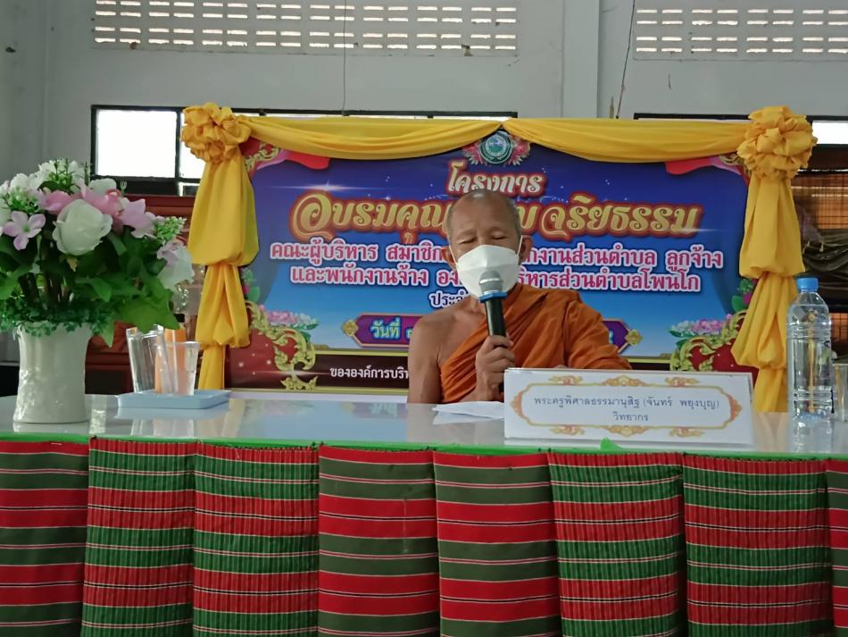 วันจันทร์ ที่ 30 เดือน พฤษภาคม พ.ศ. 2565 นายสุรินทร์ ตรองจิตต์ นายกองค์การบริหารส่วนตำบลโพนโกเป็นประธานเปิดโครงการอบรมคุณธรรม จริยธรรม คณะผู้บริหาร สมาชิกสภาฯ พนักงานส่วนตำบล ลูกจ้าง และพนักงานจ้าง... [30 พฤษภาคม 2565]