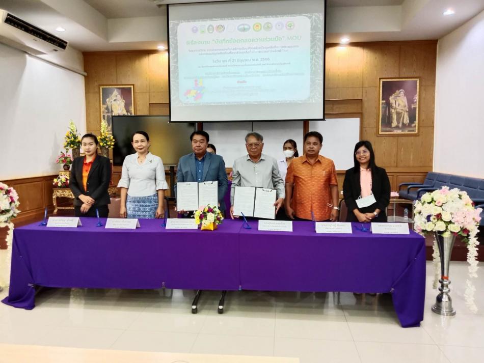 นายสุรินทร์ ตรองจิตต์ นายกองค์การบริหารส่วนตำบลโพนโก ลงนาม "บันทึกข้อตกลงความร่วมมือ MOU โครงการถ่ายทอดเทคโนโลยีการย้อมสีไหม... [21 มิถุนายน 2566]