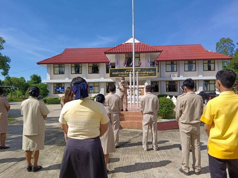 วันจันทร์ ที่ 6 มิถุนายน 2565 นำโดย นายสุรินทร์ ตรองจิตต์ พร้อมด้วย คณะผู้บริหาร หัวหน้าส่วนงานราชการ พนักงานส่วนตำบล และ พนักงานจ้างฯ ร่วม เข้าแถวเคารพธงชาติเพื่อเสริมสร้างคุณธรรม จริยธรรม ความรักสามัคคี มีระเบียบวินัย และให้เกิดการพัฒนาคน สร้างรากฐานที่ดีในสังคม ในเวลา 08.00 น. บริเวณหน้าเสาธง ณ องค์การบริหารส่วนตำบลโพนโก