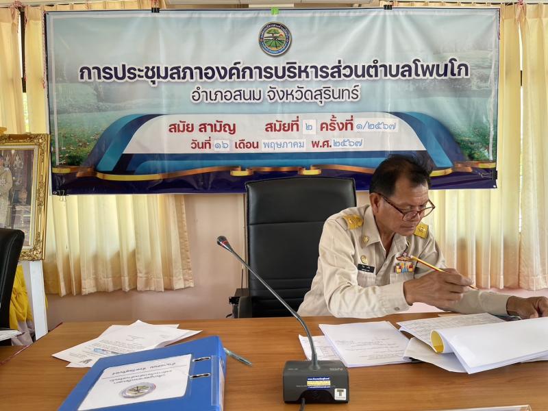 วันพฤหัสบดี ที่ 16 พฤษภาคม 2567 นายสุรินทร์ ตรองจิตต์ นายกองค์การบริหารส่วนตำบลโพนโก พร้อมด้วย คณะผู้บริหาร สมาชิกสภา และหัวหน้าส่วนราชการ ร่วมประชุมสภาสมัยวิสามัญ สมัยที่ 2/2567 โดยมี นายวีระ ภาชื่น ประธานสภาองค์การบริหารส่วนตำบลโพนโก เป็นประธานเปิดการประชุม ณ ห้องประชุมองค์การบริหารส่วนตำบลโพนโก อำเภอสนม จังหวัดสุรินทร์