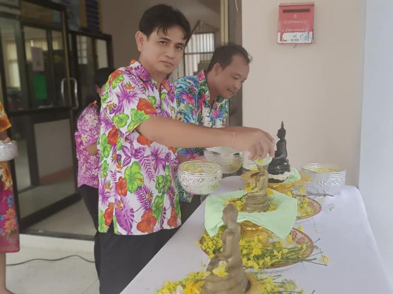 รดน้ำ ขอพร ผู้บริหาร และผู้ใหญ่ ในสำนักงานอบต.โพนโก