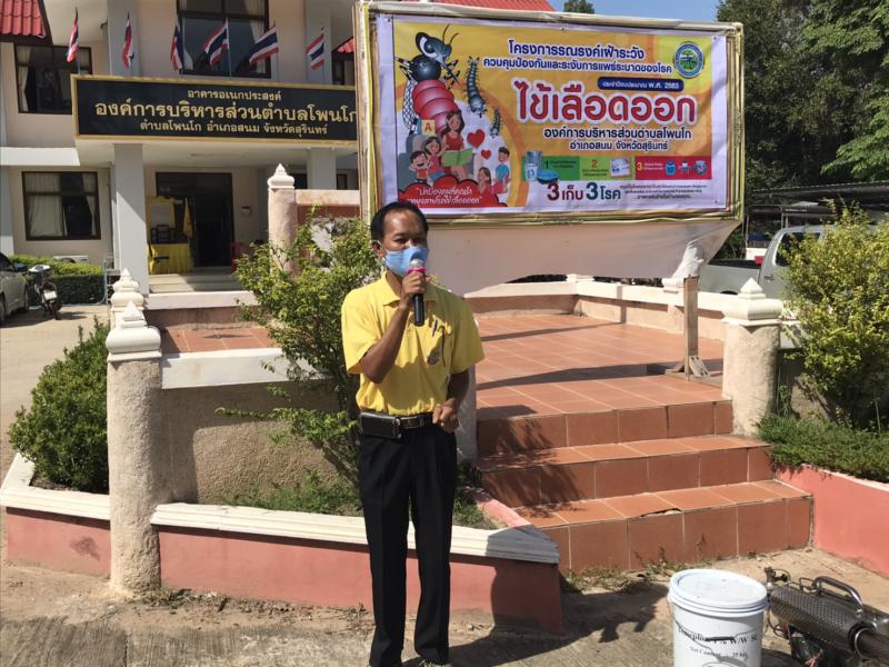 โครงการรณรงค์เฝ้าระวัง ควบคุม ป้องกันและระงับการแพร่ระบาดของโรคไข้เลือดออกตำบลโพนโก ประจำปี 2563 โดยภาคีเครือข่าย หน่วยงานราชการ นักเรียน ภาคประชาชน และ อสม.ตำบลโพนโก